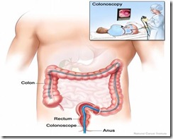 5) Colonoscopy yaitu sebuah prosedur untuk melihat bagian dalam rektum dan sigmoid apakah terdapat polip kanker atau kelainan lainnya. Alat colonoscope dimasukkan melalui rektum sampai kolon sigmoid, polip atau sampel jaringan dapat diambil untuk biopsi.